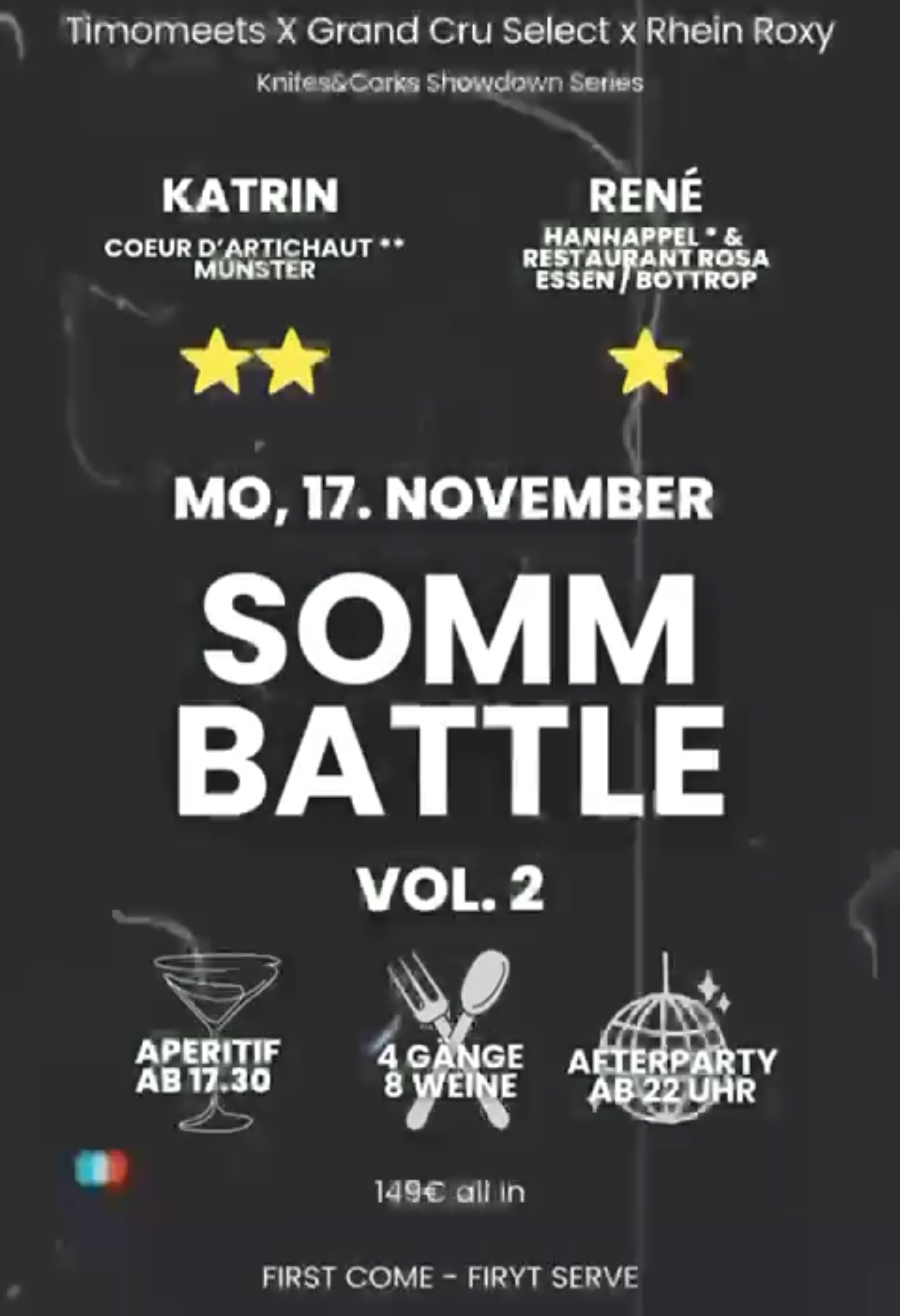 AQUA auf dem Eventschiff Rhein Roxy Heinrich Lübke Ufer, KölnKnifes & Corks Showdown Series geht in die nächste Runde. Wow Leute – was ein erstes Event. Wir sind immernoch überwältigt. Aber wir sind noch auf der Suche nach den nächsten Teilnehmern für 2026. Das Nächste Battle steht an: Aufstrebende Sommeliére die Münster aufmischt, gegen gestandenen Gastronom und Weinkünstler, der die Autobahn zwischen Essen und […]